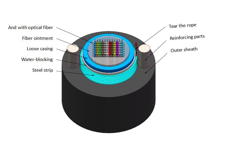 製品説明 [ 金属補強コンポーネント、鋼-ポリエチレン結合シースセンターバンドルチューブタイプ完全充填通信屋外リボン光ファイバーケーブル ] 光ファイバーケーブルの構造は、マルチモードまたはシングルモード光ファイバーテープを高弾性プラスチックに挿入して、内部に防水コンパウンドを充填したルーズチューブを形成し、ケーブルの中心に配置することです。チューブの外側は、水と鋼テープで縦方向に包まれています。2本の平行な鋼線が、ケーブル敷設用の補強コンポーネントとしてポリエチレンシースに埋め込まれています。